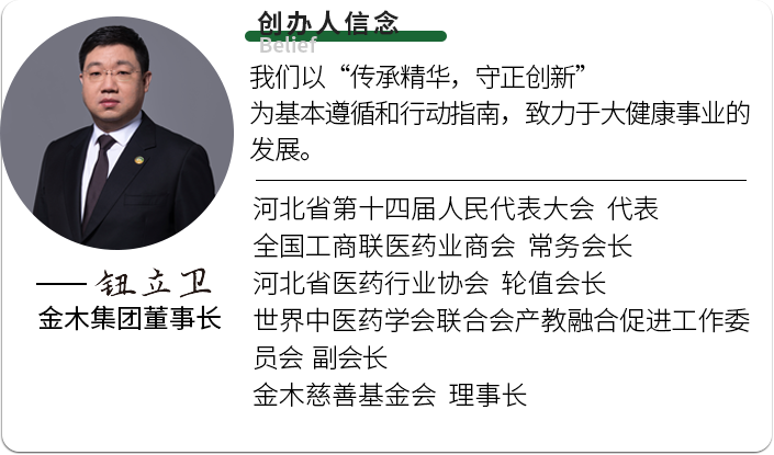 金木集团的全域健康智慧生态战略,整合了集团在研发、生产、销售、服务等多个领域的资源和优势,构建了一个覆盖全人群、全生命周期、全产业链的健康智慧生态系统。透过金木品牌的升级蜕变,我们看到的不仅是一个中医药企业的成长与壮大,更是一脉中医药文化的传承与新生。金木集团带着对生命的敬畏、对品质的坚守、对创新的追求,在守护国民健康的道路上,步履不停,逐光而行,以实际行动为推动中医药现代化、守护国民健康贡献着“金品质”力量。